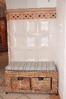 Die Bank vor dem Ofen ist besonders im Winter beliebt und ein gemütliches Plätzchen.
