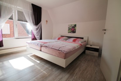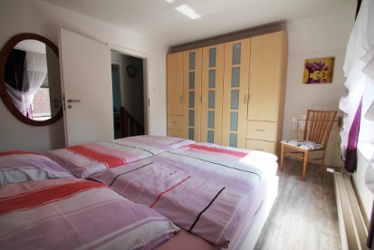 Das Schlafzimmer mit Doppelbett 180 x 200 befindet sich im Obergeschoss.