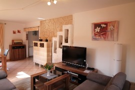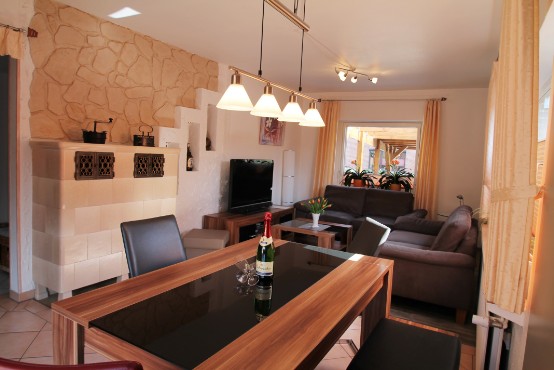 Neben dem Flachbildschirm mit Satellitenanschluss, gibt eine kleine Buchauswahl und reichlich Gesellschaftsspiele für groß und klein.