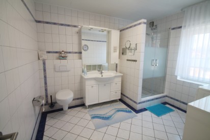Das geräumige Bad ( 2024 komplett neue Badmöbel) bietet reichlich Platz für Ihre Utensilien.